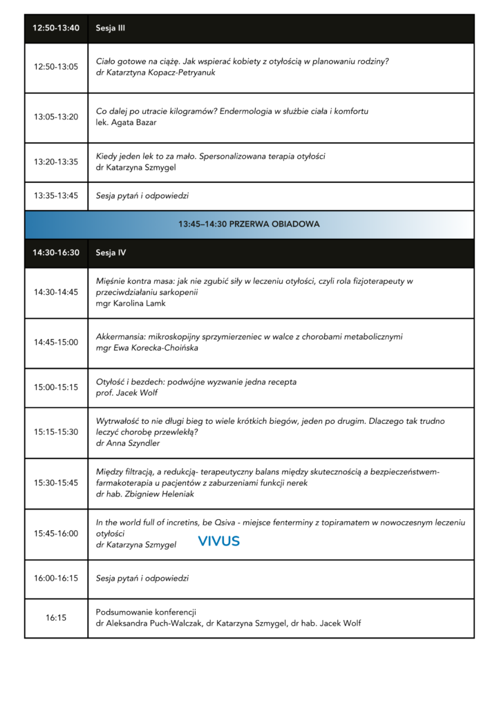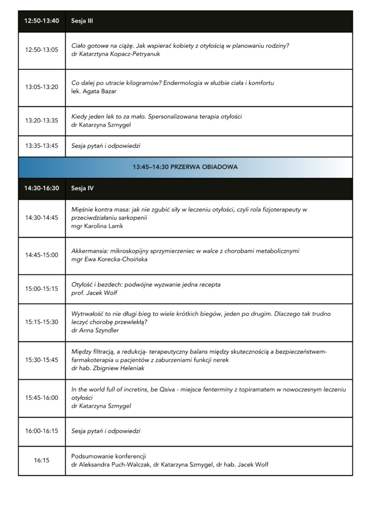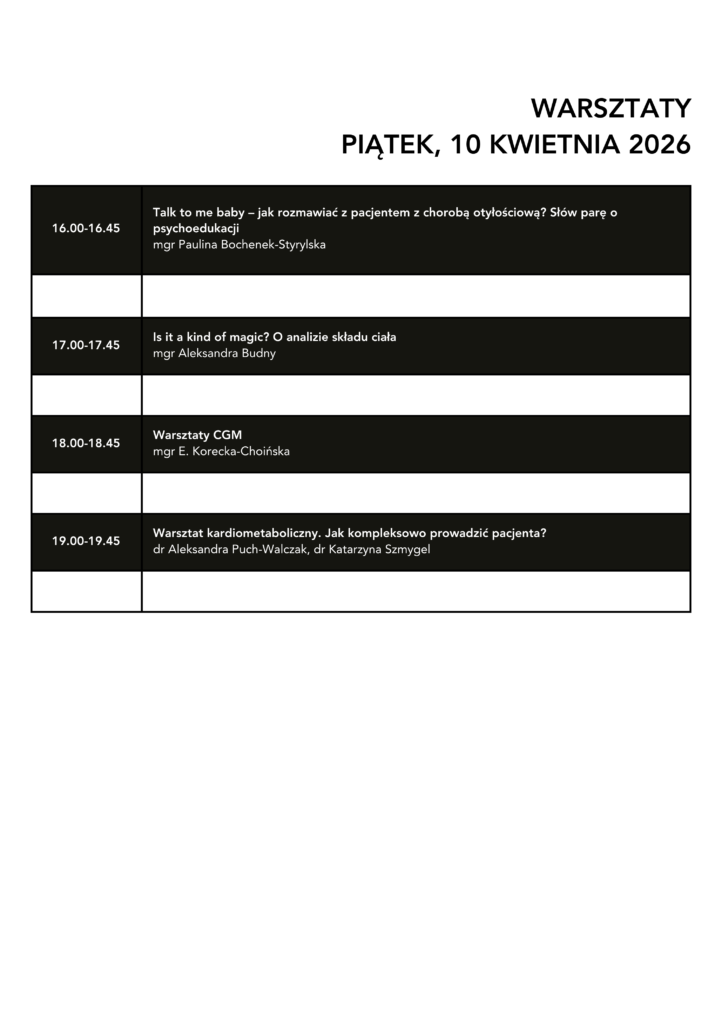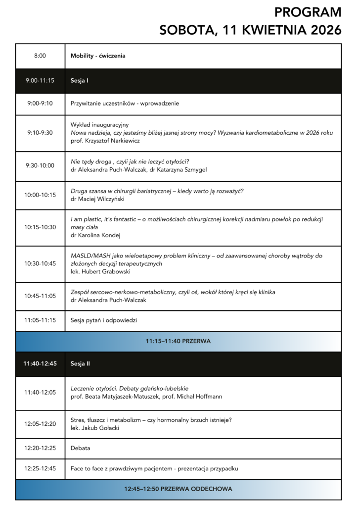 Konferencja jest skierowana do wszystkich zajmujących się leczeniem pacjentów z chorobą otyłościową, szczególnie do specjalistów medycyny rodzinnej, diabetologii, endokrynologii, gastroenterologii, kardiologii i interny.