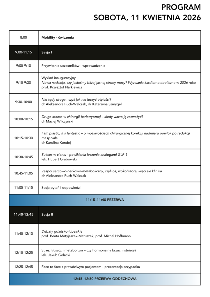 w imieniu zespołu Dziennego Oddziału Leczenia Otyłości i Centrum Medycyny Snu Kliniki Nadciśnienia Tętniczego i Diabetologii Gdańskiego Uniwersytetu Medycznego serdecznie zapraszamy na drugą konferencję „Sprawa wielkiej wagi. Porozmawiajmy o otyłości”.